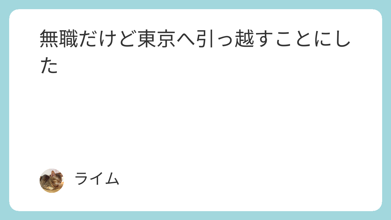 職なし貯金なしのくせに引っ越すなんて頭は大丈夫か? と思う人もいるだろう。安心してほしい。無謀であることはぼく自身が一番よくわかっているよ!